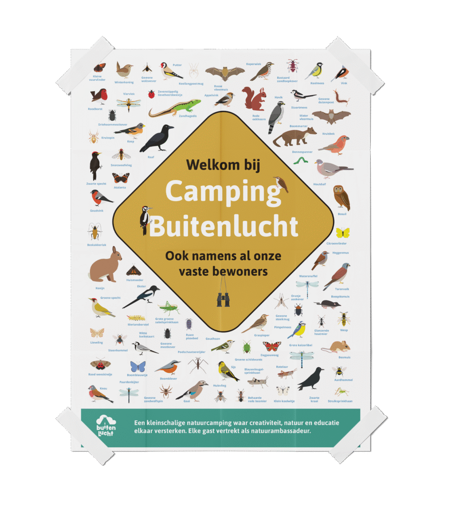Ons terrein van 3,6 hectare ademt creativiteit en verwondering. Er is van alles te ontdekken: een natuurspeeltuin, kampvuurplekken, buitenatelier en sterrenkijkveld. Overal ontdek je verhalen die je anders leren kijken naar de natuur: een oude eik die vertelt over het landschap, houten dieren verstopt voor een speurtocht of een herfstdouche van bladeren uit de bomen.